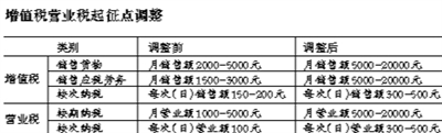 增值稅營業稅起征點上調 財政部稱支持小微企業